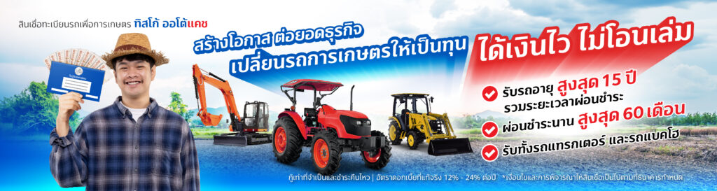 การนำเทคโนโลยีการเกษตรมาปรับใช้ถือเป็นการลงทุนเพื่ออนาคตที่ยั่งยืน สำหรับเกษตรกรท่านใดที่มองหาเงินทุนเพื่อต่อยอดกิจการ ไม่ว่าจะเป็นการซื้อเครื่องจักรใหม่ หรือลงทุนในระบบฟาร์มอัจฉริยะ ทิสโก้ ออโต้แคช ขอเสนอ “สินเชื่อทะเบียนรถเพื่อการเกษตร” ที่พร้อมตอบโจทย์ทุกความต้องการเพียงคุณมีรถแทรกเตอร์หรือรถแบคโฮ ก็สามารถเปลี่ยนเล่มทะเบียนเป็นเงินทุนก้อนโตได้ง่าย ๆ ไม่ต้องโอนเล่ม แถมยังมีรถไว้ใช้งานเหมือนเดิม เพื่อให้คุณพร้อมก้าวสู่การเป็นเกษตรกรยุคใหม่ได้อย่างเต็มตัว ด้วยขั้นตอนไม่ยุ่งยาก อนุมัติไว ให้คุณนำเงินไปใช้เสริมสภาพคล่องหรือลงทุนในเทคโนโลยีทางการเกษตรสมัยใหม่ ได้ทันที