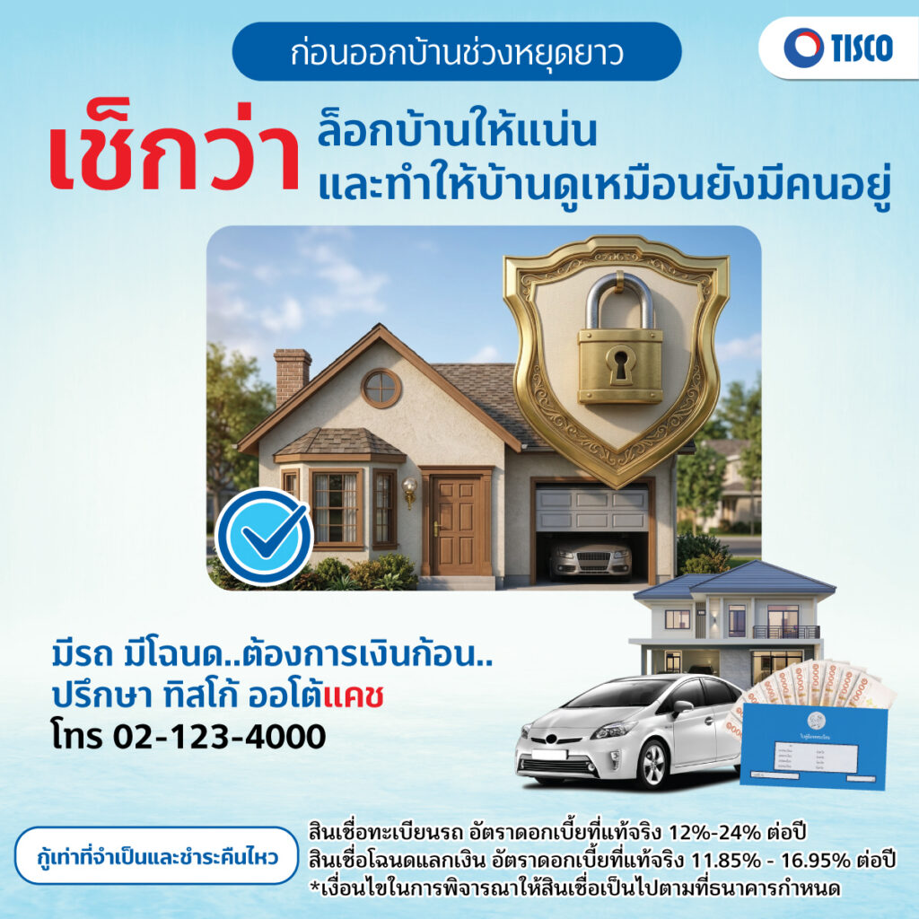 และถ้าหยุดยาวนี้จะต้องเดินทางไปไหนก็ขอให้เดินทางปลอดภัยในทุกเส้นทางค่ะ ด้วยรักและห่วงใยจาก ทิสโก้ ออโต้แคช แต่ถ้ามีรถ มีโฉนด เปลี่ยนเป็นเงินด่วนได้ การเงินไม่สะดุด ทุกโอกาสได้ไปต่อ โทร 02-123-4000 หรือแอดไลน์ TISCO AutoCash ปรึกษาฟรี