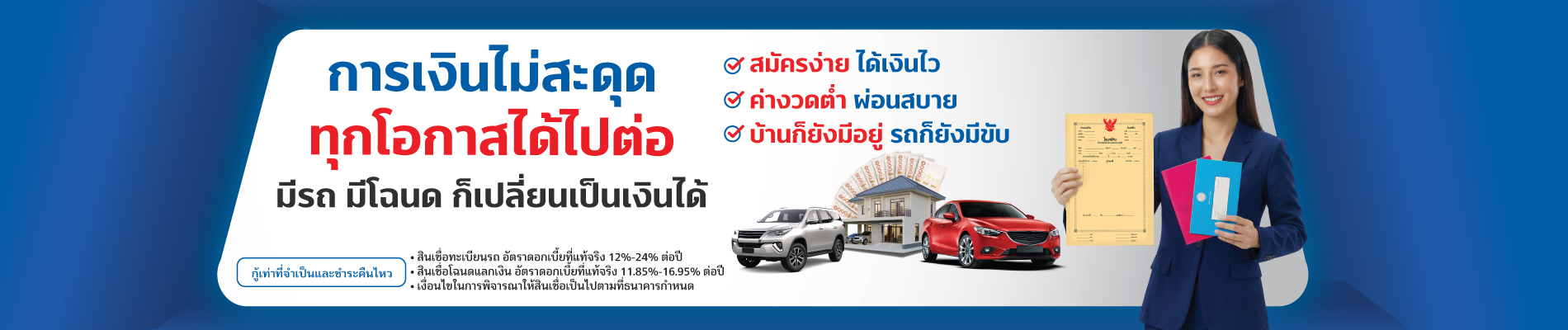 สินเชื่อทะเบียนรถยนต์ อัตราดอกเบี้ยที่แท้จริง 12% – 24% ต่อปี
